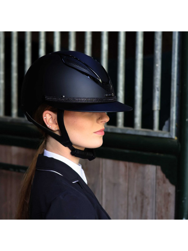 - Design chic : Visière large, galon frontal amovible à strass ton sur ton.