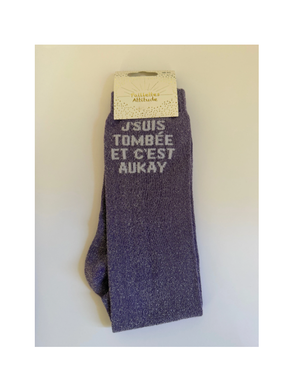 Chaussettes J'suis tombée et c'est aukay - Paillettes Attitude