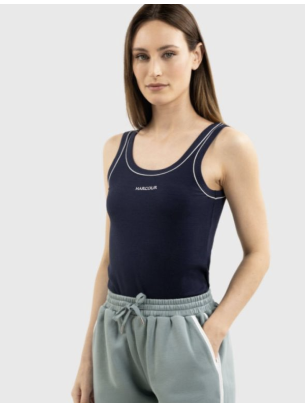 • Passepoils blancs le long de l’encolure et des emmanchures, touche raffinée