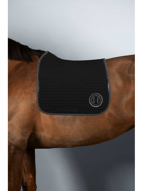 Ce tapis, grâce à sa coupe solide et sa forme, reste bien en place sous la selle et est largement dégarrotté.